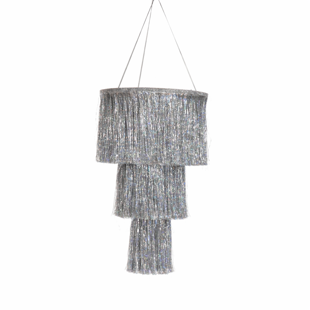 Ajoutez une touche festive et brillante à votre décoration avec cette suspension à franges argentées. Légère et élégante, elle attire immédiatement le regard et crée une ambiance chic et lumineuse, parfaite pour toutes vos fêtes.