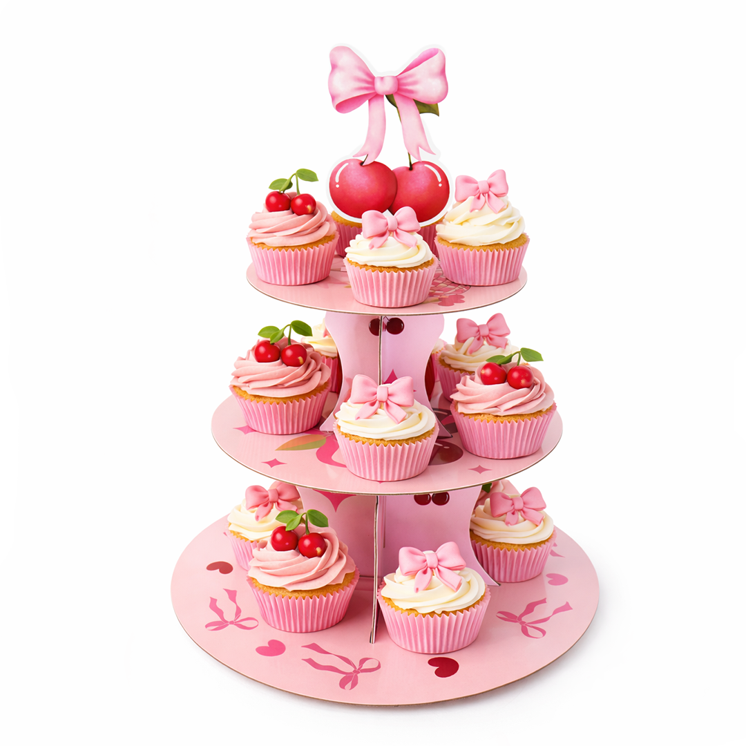 Apportez une touche douce et girly à votre fête avec ce présentoir à cupcakes au thème cerise et nœuds. Parfait pour sublimer vos desserts, il crée une mise en scène élégante et gourmande pour toutes vos occasions spéciales.