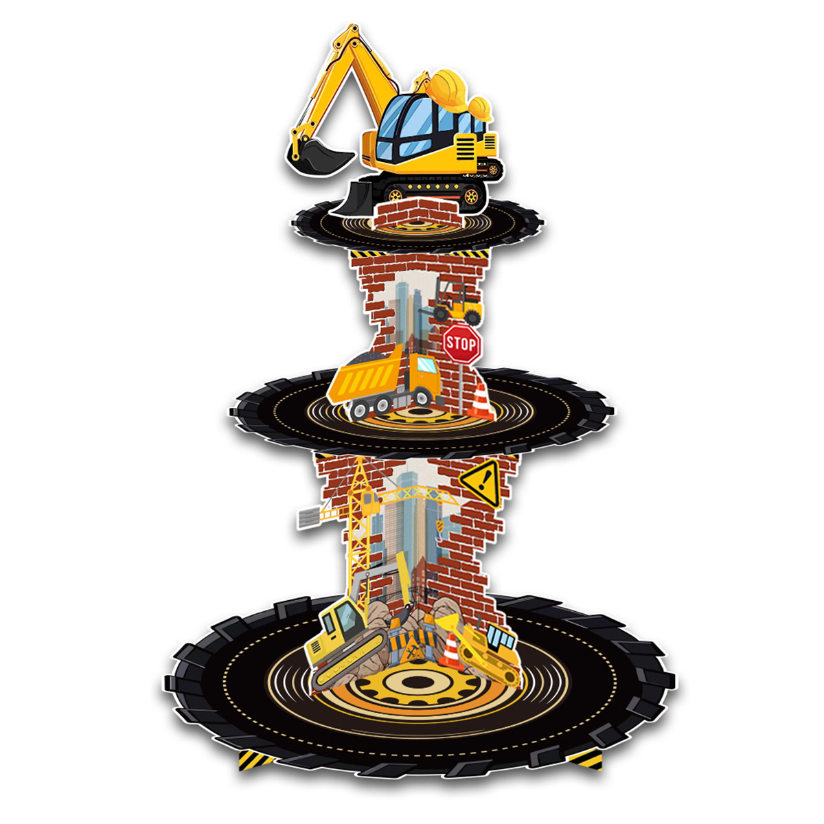 Mettez en scène vos douceurs avec ce présentoir à cupcakes thème chantier au design spectaculaire ! Avec ses différents niveaux décorés d’engins de construction et ses détails immersifs, il transforme votre table en véritable zone de chantier. Parfait pour exposer gâteaux, cupcakes et friandises avec originalité et effet “waouh” garanti !