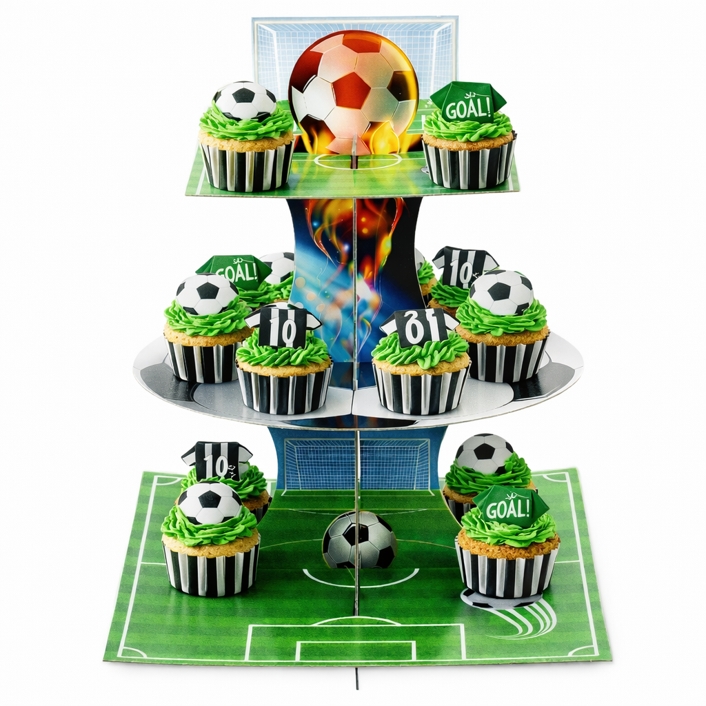 Crée une table spectaculaire avec ce présentoir à cupcakes sur le thème du football ! Son design original en forme de terrain avec ballon en relief apporte une vraie mise en scène pour sublimer tes desserts lors d’un anniversaire ou d’une fête sportive.