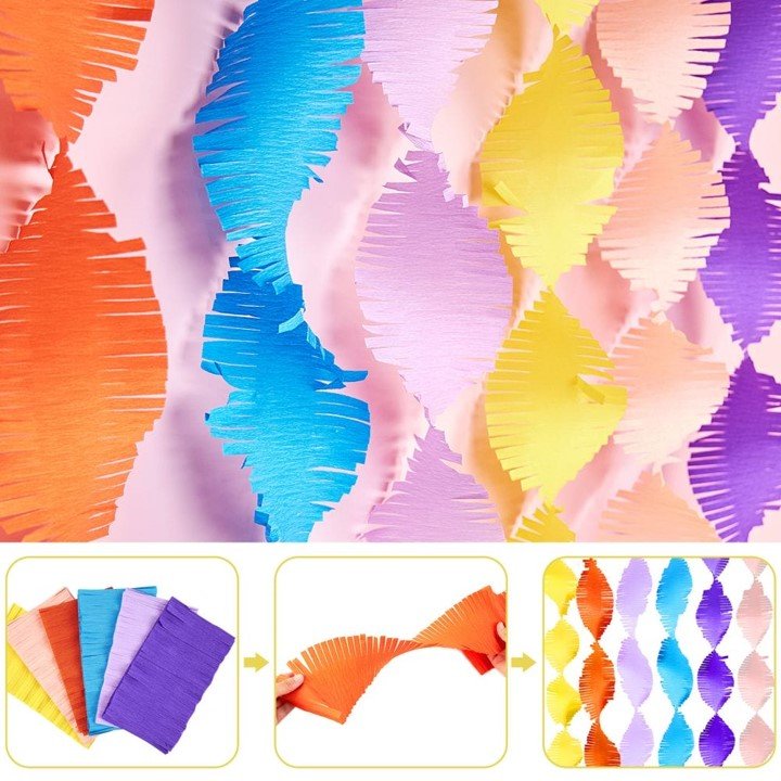 Apportez une touche de couleur et de mouvement à vos décorations avec ce lot de 6 guirlandes en crépon au design torsadé. Légères et faciles à suspendre, elles créent un effet visuel dynamique idéal pour toutes vos fêtes.