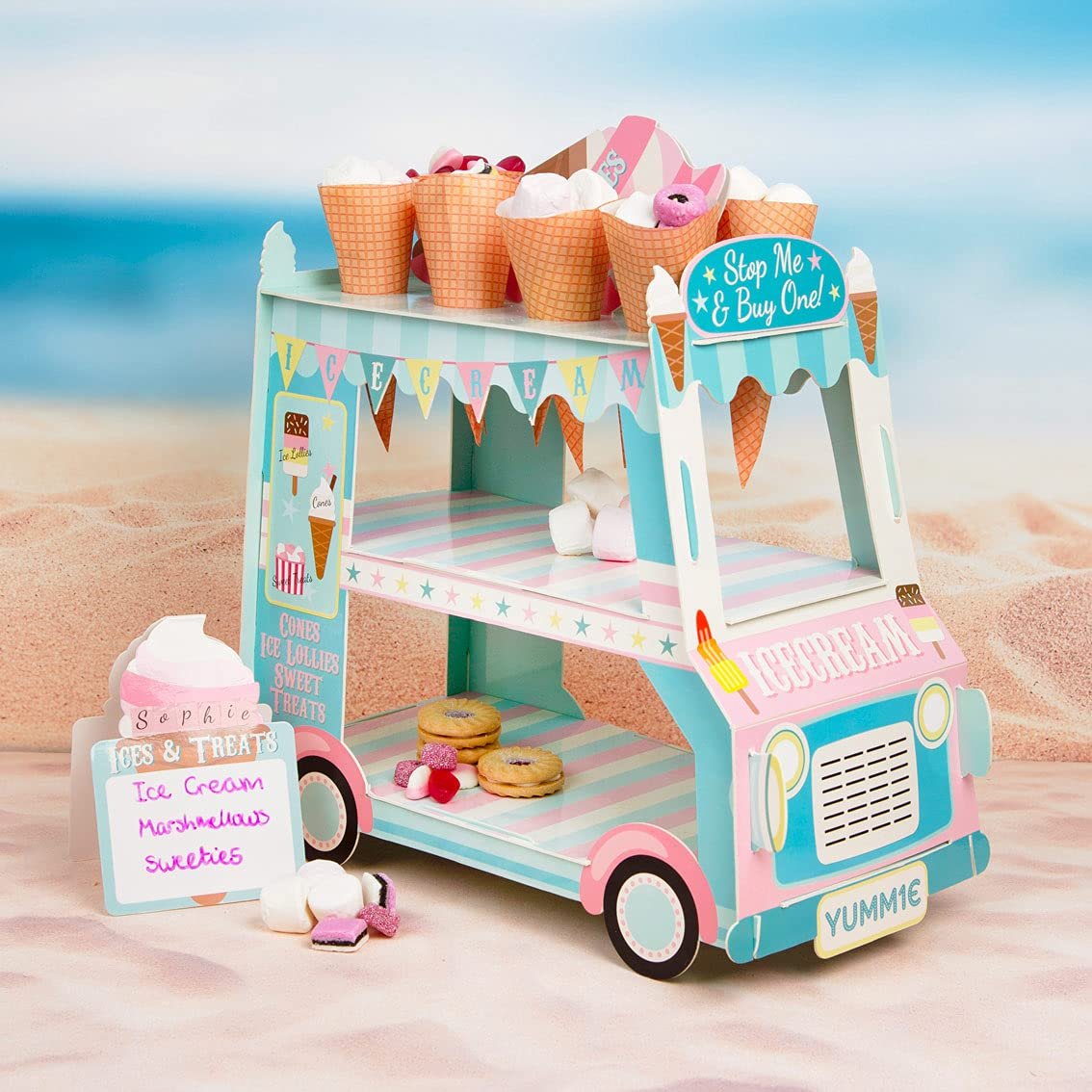 Apportez une touche fun et originale à votre fête avec ce présentoir en forme de camion de glaces, parfait pour sublimer vos douceurs.