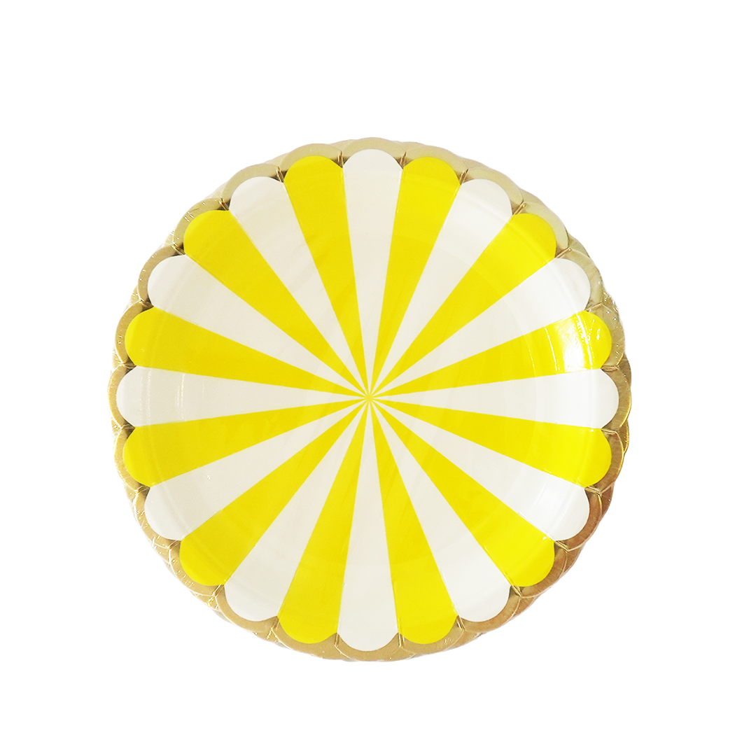 Apportez une touche lumineuse et élégante à votre table avec ces assiettes à dessert aux motifs rayonnants jaune et blanc. Parfaites pour créer une ambiance fraîche et festive lors de toutes vos célébrations.