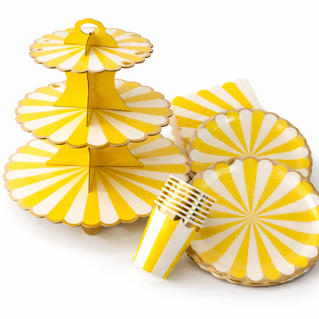Créez une table lumineuse et élégante en un clin d’œil avec ce kit complet aux rayures jaune et blanc. Parfaitement assorti, il apporte une touche chic et ensoleillée à toutes vos célébrations.